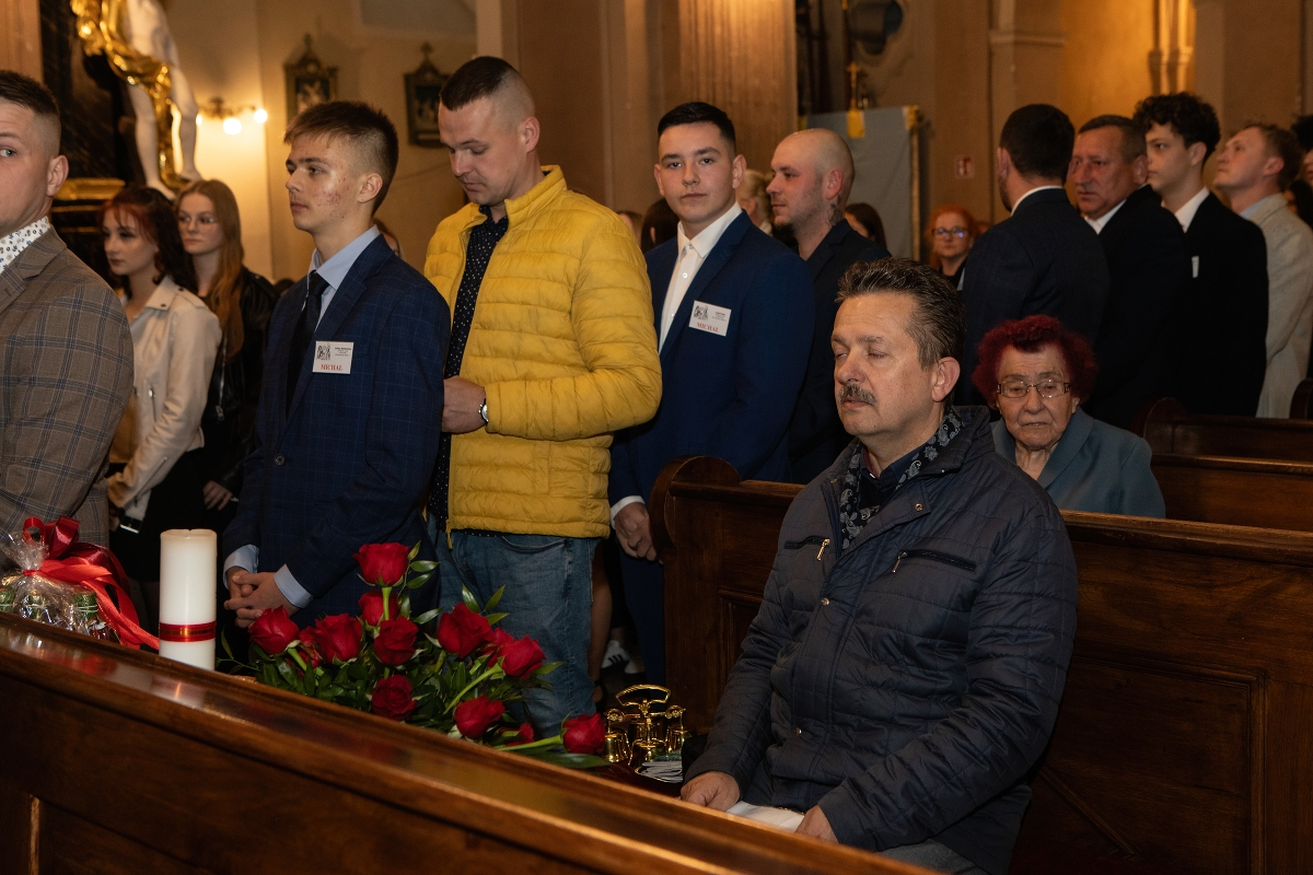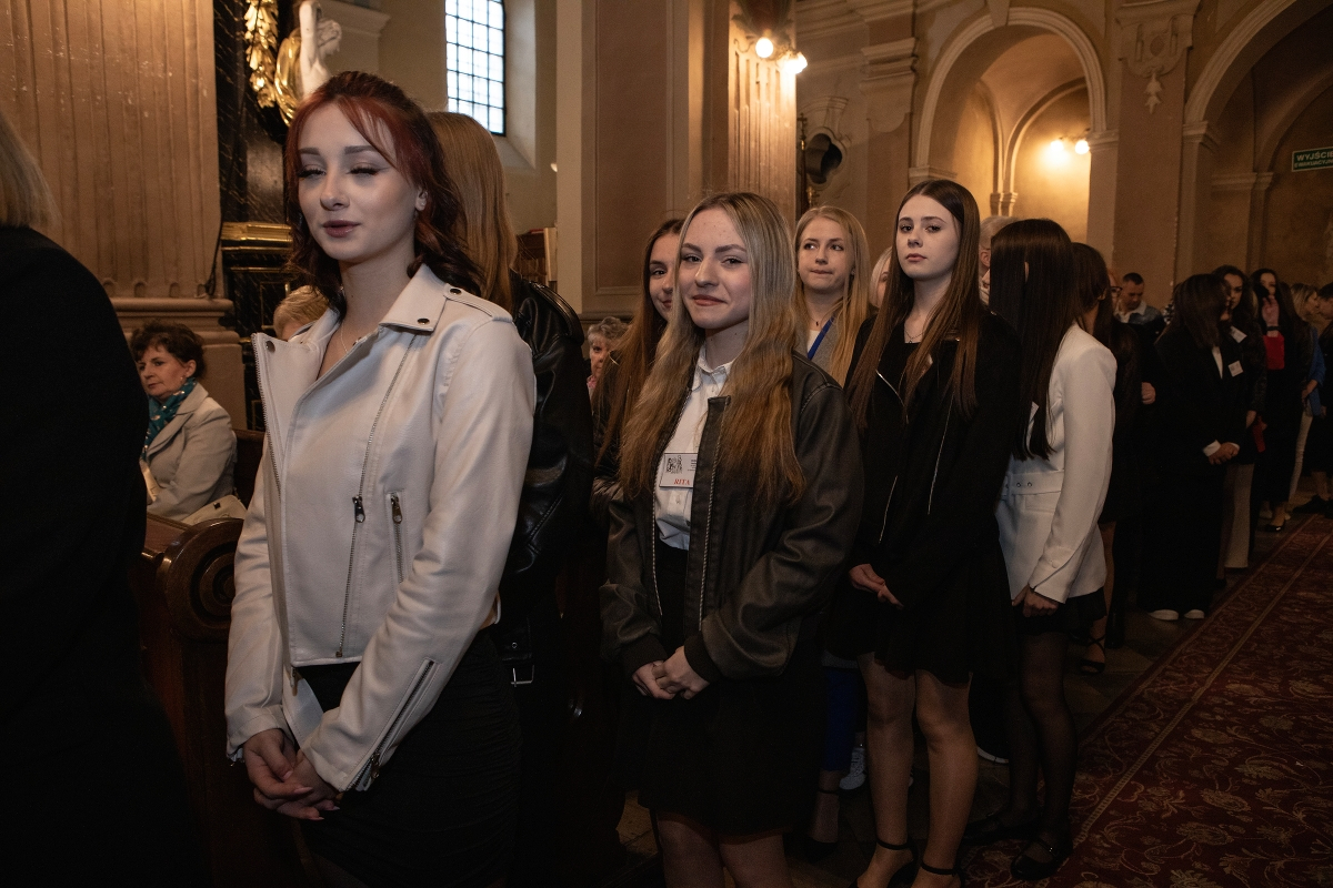 Młodzież mająca przyjąć sakrament bierzmowania zgromadziła się w kościele pół godz. przed Mszą św.