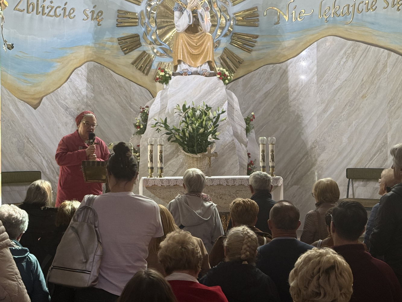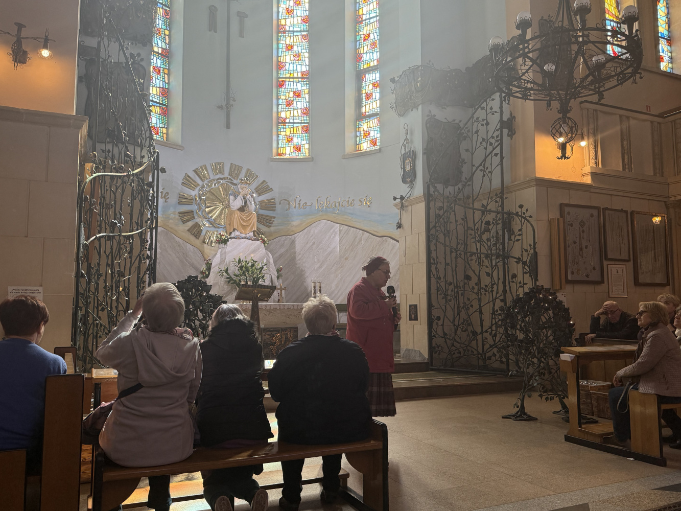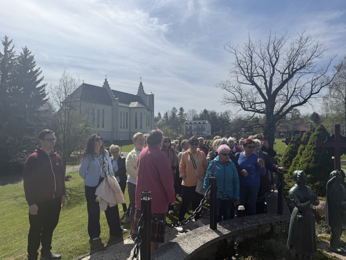 Kolejnym punktem naszej pielgrzymki był Dębowiec, gdzie znajduje się Sanktuarium Matki Bożej Saletyńskiej. To miejsce szczególne, przepełnione obecnością Maryi, która wzywa do nawrócenia i pojednania. W ciszy sanktuarium mogliśmy powierzyć Matce Bożej nasze troski, intencje i całe nasze życie. Wielu z nas doświadczyło tam głębokiego pokoju serca. W odkryciu tego miejsca pomogła nam s. Józefa Iwoniak, która z charyzmą i oddaniem opowiadał nam o tym miejscu.