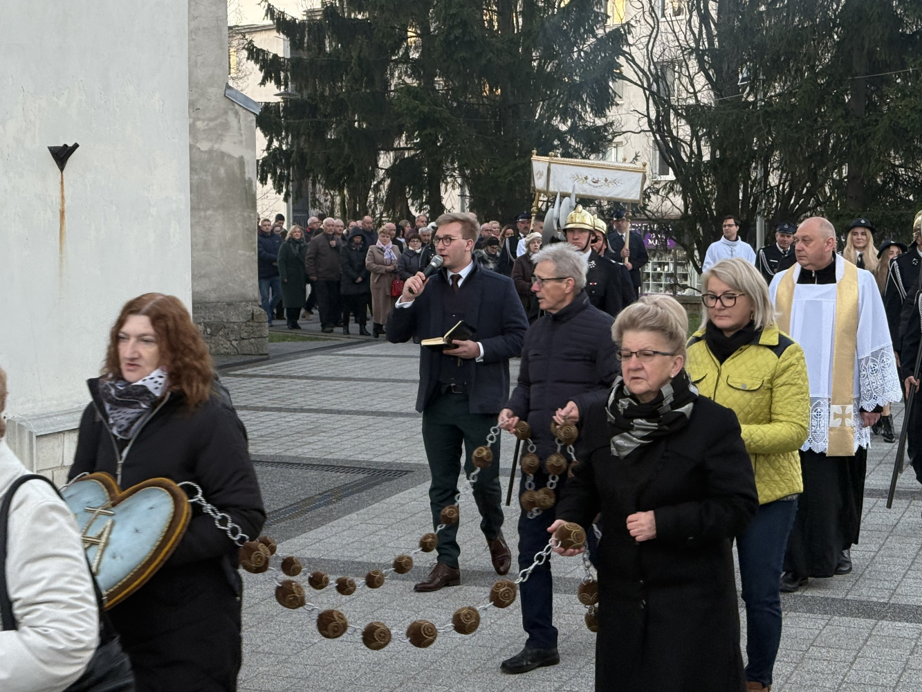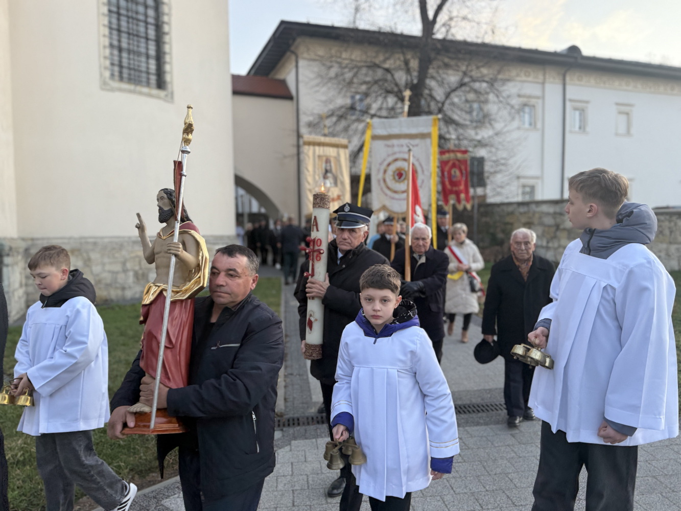 W poranek wielkanocny, 5 kwietnia 2026 r. bijące dzwony oznajmiły nam, że Chrystus zmartwychwstał! Procesję rezurekcyjną, która tradycyjnie okrążyła kościół trzy razy, poprowadził ks. Proboszcz.